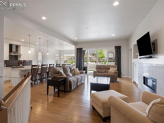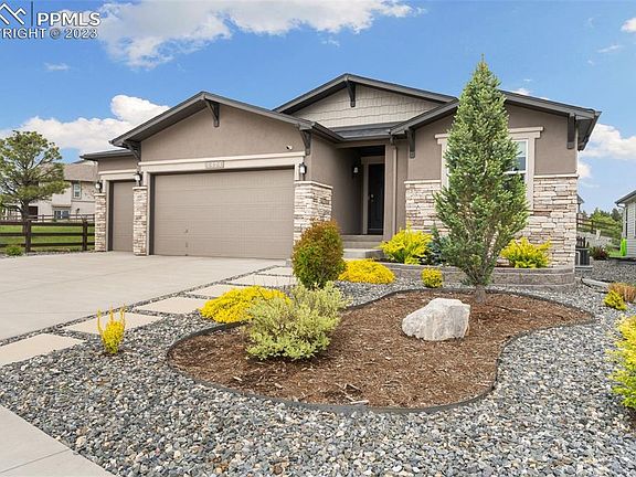 This Keller build, the Ellingwood, is the builders largest Ranch home with 3 bedrooms plus an office on the main level. It is move in ready and only 5 years old. The kitchen opens up to the great room with a large island and features maple cabinetry and solid quartz counter tops. A brand new AC was installed including a whole home humidifier. The finished lower level includes 2 additional bedrooms, a full bathroom and a large rec room that is pre-wired for a home theatre. Due to the large lot there is an oversized true 3 car garage. This is an amazing comment with a brand new park (Wild Rumpus Park), gorgeous walking trails literally in the backyard and absolutely the best neighbors one could ask for. Located in District 20 (which is among the top schools in Colorado Springs) don’t miss this rare opportunity to live in a fully finished ranch home in sought after Cordera Neighborhood.
