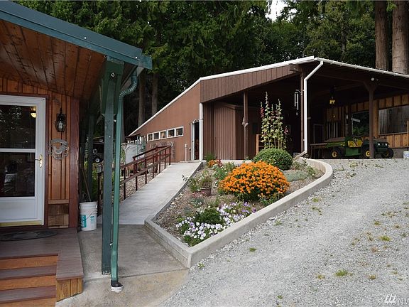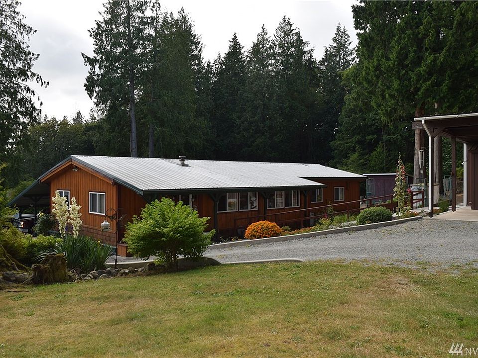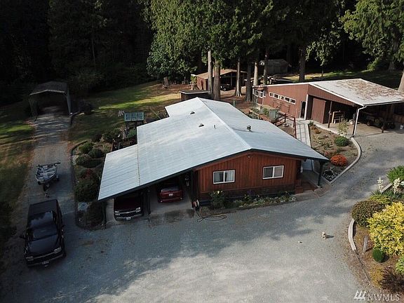 Pride in ownership with custom cabinets, cedar ceilings and trim work. 3 bedroom, 1.75 bath, open concept floorplan. Enjoy the outdoors with covered porch and many outbuildings. Including a shop that is over 1200 sq ft, wired, heated and much more. This property has RV parking and ample parking for all your toys. Enjoy this park like and secluded 4+ acre property with access to a creek.