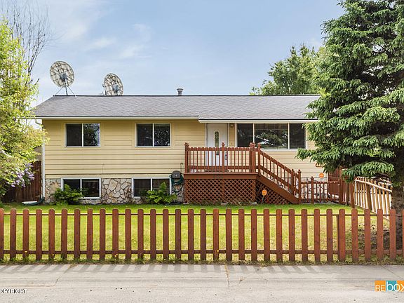 This Cute Affordable 5 bedroom 2 bath East Anchorage large family home is in a great neighborhood. It's situated on nearly 1/4 acre. Wood floors through out. Lower level has kitchenette and private entry - could be used as Mother-in-Law apartment or rented as a duplex. Home has an awesome back deck with large back yard that is fenced and has a large sandbox area with Playhouse. There's a large storage shed and ample RV and toy parking availability. Only minutes from JBER!!