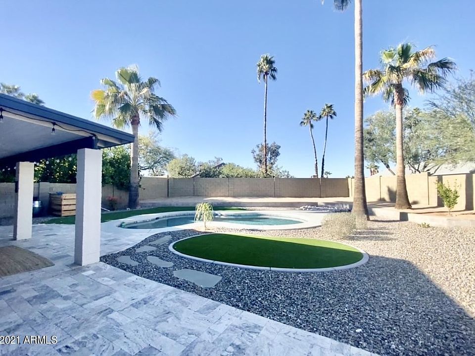 Remodeled Check! Pool Check! RV gate & RV parking Check-check! NO HOA! NOPE! Wow!! Don't miss out on this fabulous home in the heart of 85032, close to public & private schools, it has it all!! Inside, a remodeled, modern look, with light gray, wide plank title floors, retro tile, white shaker cabinets in kitchen & bathrooms, Corian countertops, walk in pantry, SS appliances, LED lighting & a dual fireplace await. Included is front loader W&D, Cox Fiber, Ring & security cameras & outdoor TV. This 3 bed, 2 bath, 2 car, 7 slab parking & is move in ready. Outside is a 3-palm treed- resort style, private backyard, new pebble sheen pool, travertine patio, grassy area, storage shed, side gate, doggie door & run, lime tree, plus a built-in BBQ grill. YES! THIS is everyones dream home!!