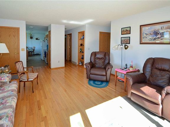 Well cared for home on 10 acres! Beautiful hardwood floors in upper level, neutral colors, master suite w/ double closets. Spacious family room downstairs with full ingress/egress window and wood stove. Could cut it in half for another legal bedroom. Large bathroom and 2 additional rooms for crafts/storage/office. Large yard with mature trees, 2 car garage and additional 3 stall garage/shop! One stall has sheetrock, insulation and heater. Drain field for septic was replaced approx 4 years ago. Two (2) separate 5 acres legal descriptions. Approximately 8.5 acres of level, irrigated hay ground w/ irrigation shares to adequately irrigate. All info per orion and sellers, buyer to verify.