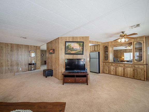 Wonderful opportunity to own your home AND the land it sits on! This well laid out MFD home sits at the end of a quiet cul-de-sac on a generously sized lot. Inside this 2 bedroom, 2 bathroom home you'll find lots of room to entertain with 2 living areas, a dining room, and a large kitchen! Outside you have an attached carport, possible Boat/RV parking, two storage sheds and a fully fenced in yard with some fruit trees!