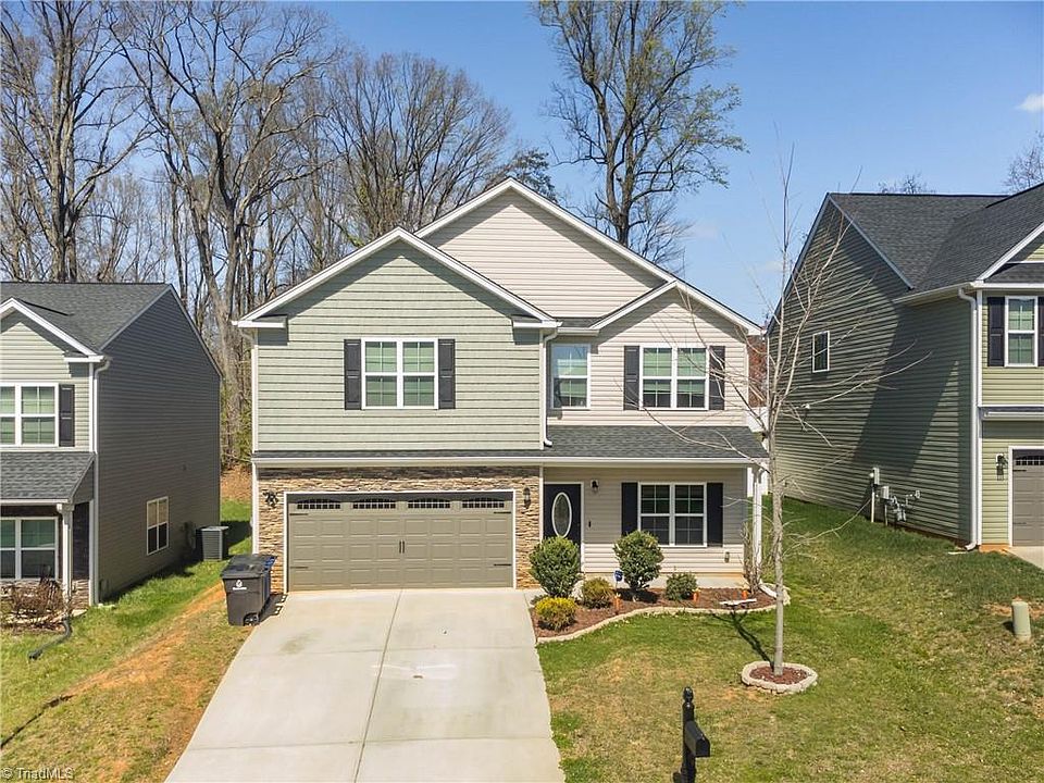 4 Bedroom, 2.5 bath home conveniently located near Winston-Salem, Kernersville, High Point & Greensboro. Upon entering,you will see the formal dining room with a coffered ceiling that leads into the kitchen. The kitchen has granite countertops & all stainless-steel appliances. The kitchen opens to a huge living room with tile floor and a stacked stone fireplace. There are hardwoods in the foyer, formal DR, & kitchen. The primary bedroom suite has a vaulted ceiling with a double granite vanity, garden tub, separate shower & TWO custom walk in closets. 3 generously sized additional bedrooms are located on the upper level. The sizeable laundry room w/ custom cabinetry is also located upstairs. The backyard is fenced as well. So much house for the price! HOA is optional for this addres and includes playground.