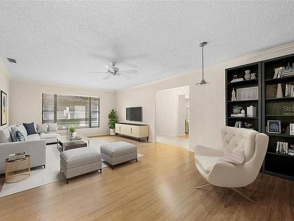 One or more photo(s) has been virtually staged. Great floor plan in convenient Center Gate, a 55+ community. Incredible value for this large villa. It is likely that the enclosed lanai is not included in the square footage, it has central air and large neutral tile floors. All rooms are spacious, bedrooms are separated and this villa feels like a single family home. Private screened and walled courtyard is viewed from 1 guest bedroom and the master bedroom plus there is an enclosed lanai. Kitchen is original but open to living areas and there is a good sized laundry room. New 4 ton 18 SEER air conditioning installed in 2017, hot water heater 2016. Large 2 car garage, wood laminate in living areas, kitchen and 1 bedroom. Oversized neutral tile in master, 1 guest bedroom and lanai. Wonderful area close to shopping, restaurants, beaches and all that Sarasota has to offer.