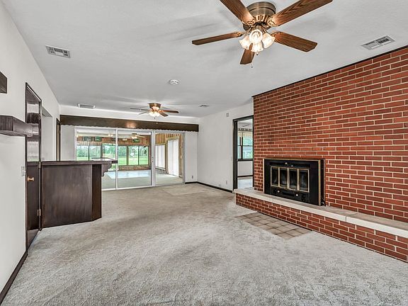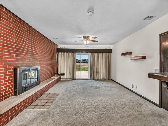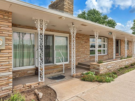 Now offering a $15,000 flooring allowance or seller concession with acceptable offer! Custom built, one owner, sprawling ranch with 24' x 36' shop on 2.2 acres of glorious peace! There's a fantastic windmill and gazebo in the backyard. The shop door is 10' x 12' if you need RV parking. Insulated shop has 110/220 & steel piped for compressor connection. The attached garage has a 32' length tandem on west side and a half bath in the garage. Built-ins galore in the attached garage. Come on in through the breezeway (family room) with a wet bar & sliding patio door off the front & sliding patio doors to the luxurious all seasons HUGE sunroom. There's a space ready for your hot tub in the northeast corner. An additional formal living room with wood burning fireplace, built-ins & bay window from the front door. Kitchen & formal dining round off the west end of this big home. Down the hall are 3 bedrooms, and full bath w/master suite & master bath. Storage at the end of the hall for linens & towels. The primary suite has a walk-in closet. Hall bath has sunken tub. From the kitchen, pass through the mudroom, laundry room with built-in laundry hamper, sink & storage cabinets. Check out the spiral staircase to the basement. There is an additional stairwell from the garage for ease of furniture placement. The basement features a wonderful family room with a dry bar, bonus room with wood burning fireplace, built-in shelving & wet bar. Another full bath in the basement & a storm shelter that measures roughly 13 x 27! So many extra features that the sellers added when they built this magnificent home. This well maintained home has a reverse osmosis water purifier and 2 wells; one for drinking and one for irrigation. Plenty of storage in this house & plenty of room to spread out & be in the country. Close to convenience store & restaurants. Walmart is just 15 minutes away. This home is a one-of-a-kind & very special. It's a must see!
