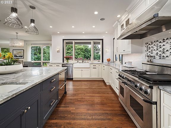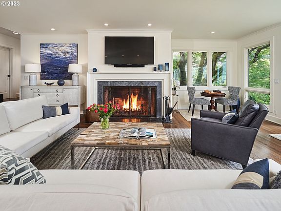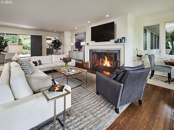 Stellar Sunset Views from a classic mid-century in Green Hills, a peaceful enclave in the West Hills featuring some of Portland's most beautiful homes. A serene and tranquil garden sets the setting where the day begins in the morning with birds chirping and yoga on the balcony outside the primary bedroom and ends with the most spectacular sunsets where you can enjoy a refreshing beverage! A fantastic kitchen, the favorite gathering place in the home leads to a wonderful dining area and living area. Two suites on the main floor and two suites in the lower level provide many living opportunities. The lower level has an epic bonus room with a fabulous fireplace to watch movies and just hang out. A secret studio above the garage where your creativity can go wild! Oh, What a life you can have! [Home Energy Score = 10. HES Report at https://rpt.greenbuildingregistry.com/hes/OR10215528]