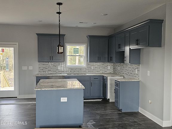 This is a simply beautiful 3 bedroom home. The exterior features an extended covered front porch, blue colored vinyl and grey shaker to accent the powder blue dormers. There is also a large back deck, great for having company or enjoying the outdoors alone. The interior of the home includes: engineered wood flooring,WALK-IN PANTRY with real wood shelving handmade cabinetry, stainless steel appliances, and granite countertops. The master bedroom is strategically located opposite from the other bedrooms and features a roomy walk in closet, double vanity in the bathroom and separate walk in shower and spacious tub. Located adjacent to the other two bedrooms is a full bath with a tub/shower. I would be remiss if I didn't mention the eat-in bar island in the kitchen and the separate laundry room with a sink and a cabinet, that makes this home complete.