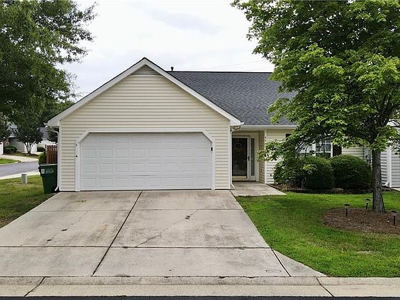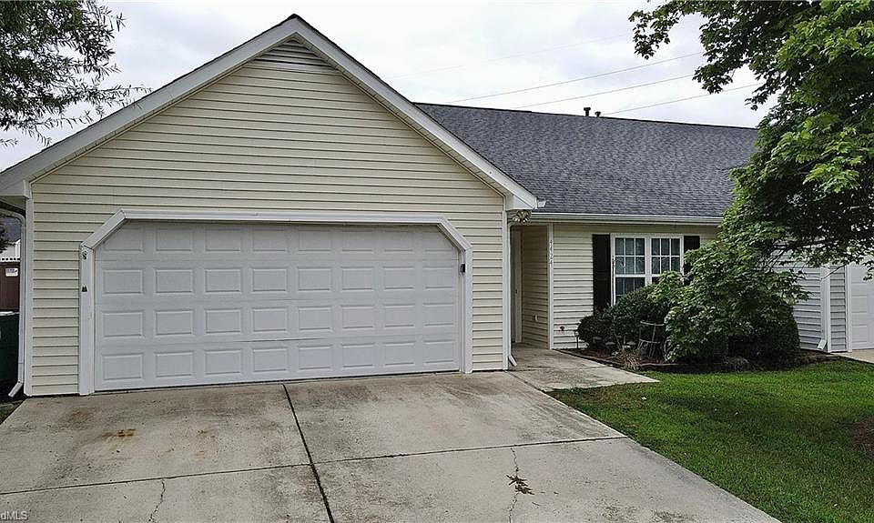 SINGLE LEVEL living on a corner lot in FAIR OAKS AT BENT TREE! Excellent location, close to 40 & 74 for quick access all over Triad, and just a 15 minute drive to PTI airport. Tons of entertainment nearby! New wood look floors and crisp neutral paint throughout this spacious town home. New insulated garage door and opener installed on this oversized attached 2 car garage. Perfect layout with a split floor plan for the bedrooms, but tons of light & bright entertaining space, including a pass through between the kitchen and the dining area. This kitchen offers counter space for prepping, and storage galore plus a pantry. The living room has vast ceilings and 2 skylights allowing the natural light to soak into the home. The lovely primary suite has vaulted ceilings, an oversized closet and an ensuite bathroom. Ceilings fans in the bedrooms to keep you cool, and a corner fireplace in the living room to keep you warm. W&D hook up! Out back, find a private space perfect for relaxing.