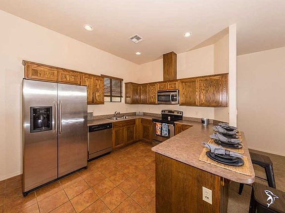 Immaculate Home. Quiet street with culdesac. Original owner had this one built. Upgraded to 10' ceilings, mission finish walls, stainless appliances including microwave and Refrigerator. Energy efficient. Professionally landscaped front and back. Full covered back patio stucco and drywall. Cabinets in garage and sealed and painted garage floors. Carpet was replaced about 2 years ago. Well taken care of and easy to show.