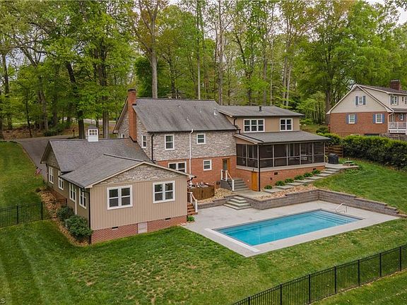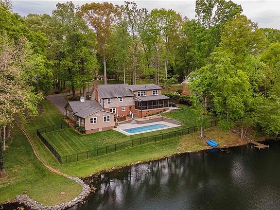 New job opportunity reintroduces this lakefront home to the market. Updates include flat ceilings with several new light fixtures. Roof 2015,dual zone HVAC system, new windows 2013 & 2016,Clopay garage & entry doors, and a beautiful saltwater pool with autocover. The main level includes a spacious kitchen with updated appliances, dining and sitting rooms with original hardwoods. Just off the kitchen on the 2nd level is a large pantry,3 bedrooms and updated full bath. A double sided gas log fireplace welcomes you to the 3rd level which house an office area, primary bedroom and bath with a large jetted tub and walk in shower. In the lower level is a renovated laundry room,5th bedroom,3rd full bath and large family room with stacked stone gas fireplace. The large screened porch overlooks a fenced backyard & pool area. An exercise room off the back of the garage doubles as a pool house with access through an industrial glass rollup door to the pool deck. A fenced garden space & dock.