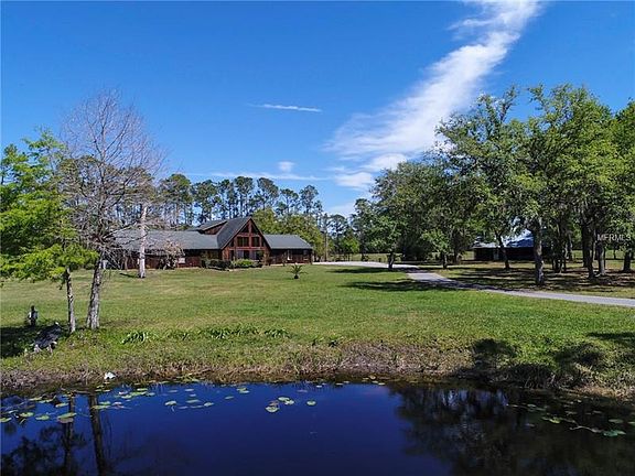 Enjoy the Nature that surrounds this Incredible Home! Stocked pond, trails in the woods, barn with possible stables, fully fenced yard, salt water swimming pool and outdoor entertainment deck, & property is allowed a boat dock on the canal that leads directly to Lake Gentry. Indoors boasts 6 bedrooms, 2 are master bedrooms, 2 bedrooms share a jack-&-jill bath, sunken family room with soaring ceilings, a living room with wood burning fireplace, and an additional Florida room. Kitchen has granite throughout and built in serving bar with water station, large granite island with cook-top. 2nd story Master bedroom has a private balcony that looks out over the pool and backyard space. In-law suite offers large living room, private bath & bedroom with outdoor access. Call about this home right away!