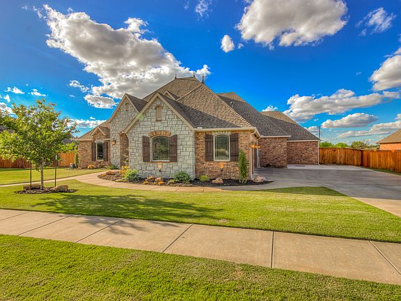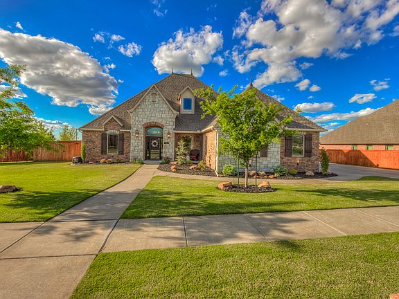 This gorgeous home is in one of West Norman's premier neighborhoods - Carrington Lakes - and is all about comfort and luxury! Entry welcomes you in with formal sitting area to your right and study with beautiful wood floors to the left. Amazing upstairs bonus room with closet (possible 5th bedroom). Dream kitchen with breakfast bar overlooking large living room and fireplace. The kitchen features granite counter tops, large kitchen island, beautiful stone accent external vent above convection oven, pantry, and under cabinet lighting. Canned lighting in main rooms. Split bedroom plan with two bedrooms having Jack 'n' Jill bath. Third bedroom has private bath with shower. Master includes double split vanity, incredible walk-in closet, and jetted tub. Game room leads to covered patio with sensor sconce lighting, overhead lighting, and ceiling fan with gate access to neighborhood pond and walking trails - gorgeous view! Utility includes mud bench & sink, plus storm shelter!