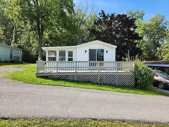 Beautiful Conesus Lake awaits you! Enjoy Conesus Lake at an affordable price! Fantastic 1-level vinyl sided manufactured home features: spacious kitchen and living room, 2 bedrooms, 1 bathroom, laundry, sunroom and deck. • Full-size, one-piece bathtub. • Six panel doors throughout • Walk-in closet in main bedroom • Lots of kitchen cabinets • Linen closet, coat closet • Washer, dryer, refrigerator, dishwasher, stove included • Deck • Enclosed sunroom • Rheem furnace with central air conditioning • 100 AMP service • Asphalt roof • 2 car driveway, can be expanded to 4 car • Shed • Year-round home • Electric golf cart allowed with waiver and proof of insurance Lot rent for 2022 is $386.25 == Must be park approved. Serious inquiries only, $79,999 call today! 585-703-0944