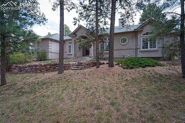 Gorgeous custom ranch style home in Wissler ranch on a private 2.64 acres with tall Pines. Beautifully landscaped with rock walls, covered paver patio, fire pit and huge covered deck for entertaining. Tons of extras like: cul-de-sac, School District 38, easy commute to Denver Tech Center or downtown Colorado Springs. Plenty of privacy in the trees on this beautiful lot. A must see! Off the front of home is the office which features double doors and interior plantation shutters plus the formal dining room with tray ceiling. Great room has tile flooring, gas fireplace, wall of windows for natural light and three pillars for a designer touch. The gourmet kitchen features a huge center island with plenty of seating, range top, granite counter tops, stainless steel appliances, large breakfast nook with walk-out to deck. The main level master has double doors, bay sitting area, walk-out to deck, a private master spa with walk-in closet, double sinks, soaking tub and a huge walk-in tiled shower. Completing the main level is an additional en-suite bedroom and spacious laundry area. Walk-out lower level features; huge family room with wet bar that walks-out to covered patio, gas fireplace, bay nook area for eating or cards, game room, two additional bedrooms with Jack-&-Jill bath & 1/2 bath plus large storage area dedicated theater room. two sets of clothes washer and dryer and disposals, and dishwasher, well-mitigated mature pines, gas fire pit with covered patio, central vacuum, security system, radon mitigation system, five-piece bath with main level master bedroom, triple deck walk-in closet, walk-in pantry, slab granite counters.