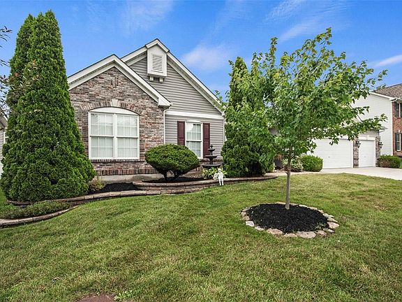 This BEAUTIFUL 3595 sq ft, 3 bdrm ranch welcomes you with an open floor plan and vaulted ceilings. Decorative columns surround the formal dining area, with a gas fireplace in the living room. The family area has hard wired surround sound, and hardwood floors. The kitchen includes an island and raised bar top, that opens to breakfast room. Main-floor laundry. The Master Suite includes 2 walk-in closets, and the master bath has dual sinks, jetted tub and separate shower. Open office area on main level. The finished lower level is ready to entertain with a family/entertainment area with custom built-ins, adjoining the game/recreation area with bar and half bath. The unfinished space is ready for your finishing touches with plenty of room left for storage. The lower-level walks out to the patio area with steps to the deck off the main level family room. Newer roof, siding & gutters (2016). 3 car-garage. Francis Howell Schools. Close to Veterans Tribute Park.