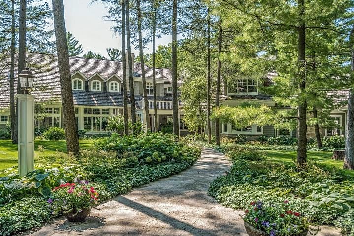Conifer Bay stands out among the most impressive lake properties in southeastern Wisconsin. 14 gorgeous acres of mature hardwoods and pines set the stage for this incomparable home/compound which will surely please the most discriminating buyer. 458 feet of excellent frontage provides private enjoyment of one of the area's premier lakes, and spectacular sunset views. No amenity was overlooked,no expense was spared. Gorgeous Hamptons-style home, impressive in size is perfect for large parties or intimate family gatherings. The finest craftsmanship, materials and finishes were used. Several fireplaces, spacious chef's dream kitchen,4 screen porches. 7 bedroom suites, incredible gathering room. Separate guest wing, gorgeous pool, vintage lakeside guest cottage,surrounded by nature - the best!