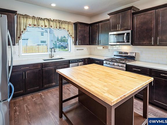 Exceptional, single-level, built in 2022 and within one of Sweet Home’s newest subdivisions! Quick 5-10 min. drive to Foster Lake, boat launch, hiking trails, camping, dog park, restaurants and more. Room for RV/boat parking. Desirable open kitchen/dining/living concept w/ vaulted ceilings, LVP/carpeted flooring throughout. Kitchen features solid quartz countertops, stainless steel and gas appliances. Owners bed w/ walk-in closet, bath w/ shower & dual sinks. Gazebo out the back w/ garden beds & tool shed.
