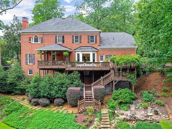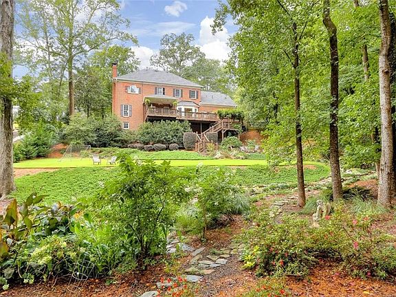 Stunning Buckhead estate with plenty of room to live, play, entertain, and explore inside and out. In premiere, exclusive area of Buckhead surrounded by multi-million dollar homes. This sturdy brick traditional with great architectural detail is updated throughout, including a new kitchen and roomy elegant baths. Grand ten foot ceilings on main and upper levels. The easy maintenance lot is MORE THAN AN ACRE and is the stuff of childhood dreams with flat soccer play area, rope swing, fire pit area, rope swing and more. On the corner of a quiet cul de sac street. You don't HAVE to stay home, you GET to stay home when you live here. Upstairs each of the three bedrooms has its own, newer bath, with a large bonus room. The finished basement has another large bedroom with en suite bath, a huge main room, and a workout room with plenty of storage. Who needs a mountain house when you have this retreat in the city?