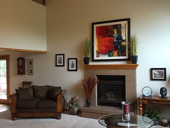 Stunning 1 1/2 story home at Hidden Lakes! Main floor master. Two upper bdrms. NC bdrm in basement. Three baths. Main floor laundry. Updated kitchen w granite countertops, newer appliances, two pantries. Upper loft living space. Gas fireplace. Full basement. Beautifully landscaped yard with deck and play area. Three car garage.