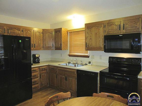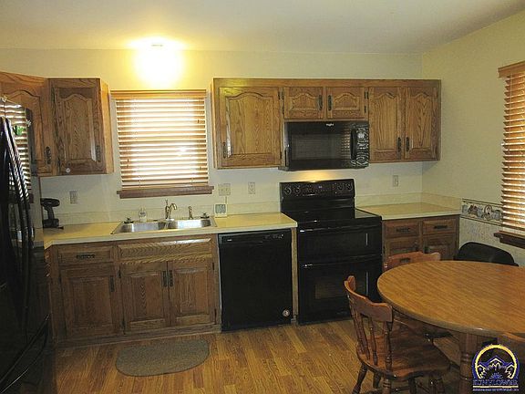 Shawnee Hghts schools, Oak Park sub. Updates in 2003: Roof, replacement windows, vinyl siding and sky lights. Breckenridge plan with master bedroom and bath on main floor. Large eat in kitchen. Large fenced backyard backs up to tree line. Unfinished basement has daylight window and wood burning fireplace with blower. Refrig, range, washer and dryer and refrig in basement all stay. Washer and dryer are one year old.
