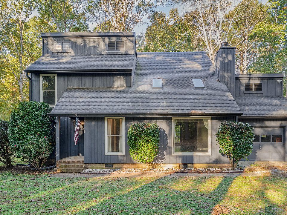 NO HOA and NO city taxes! Almost 1 acre lot in Apex. First floor master bedroom! Most of the big items have already been replaced. HVAC & Ductwork 2021, Anderson windows 2022, roof/gutters/guards 2023, plumbing 2023, water heater 2020. Interior freshly painted. Almost 1 acre with a lot of trees for privacy and it's at the end of a cul-de-sac so no traffic! Step inside the home and you are greeted with hardwood flooring on the main level. Vaulted ceilings and a fireplace in the living room open to the kitchen. The kitchen features granite counters, ss appliances, and tons of cabinets! First floor master with en suite bathroom. Bathroom has a walk-in shower with updated tile! Upstairs has two additional bedrooms and a full bath. Outside enjoy the outdoors on the deck overlooking the huge private lot! Feels like being in the country but in the heart of Apex. 25 minutes to RTP, and just a few minutes away from the new 540 southern loop to make travel even easier. There are so many hard to find things in this home! Easy to show, schedule a viewing today!