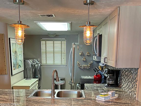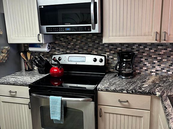 KITCHEN: Full kitchen with updated stainless steel appliances and granite countertops. Includes coffee maker, toaster, washer/dryer and dishwasher