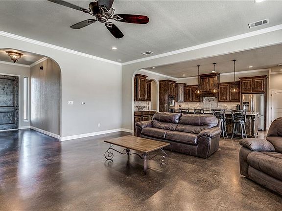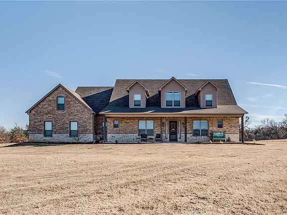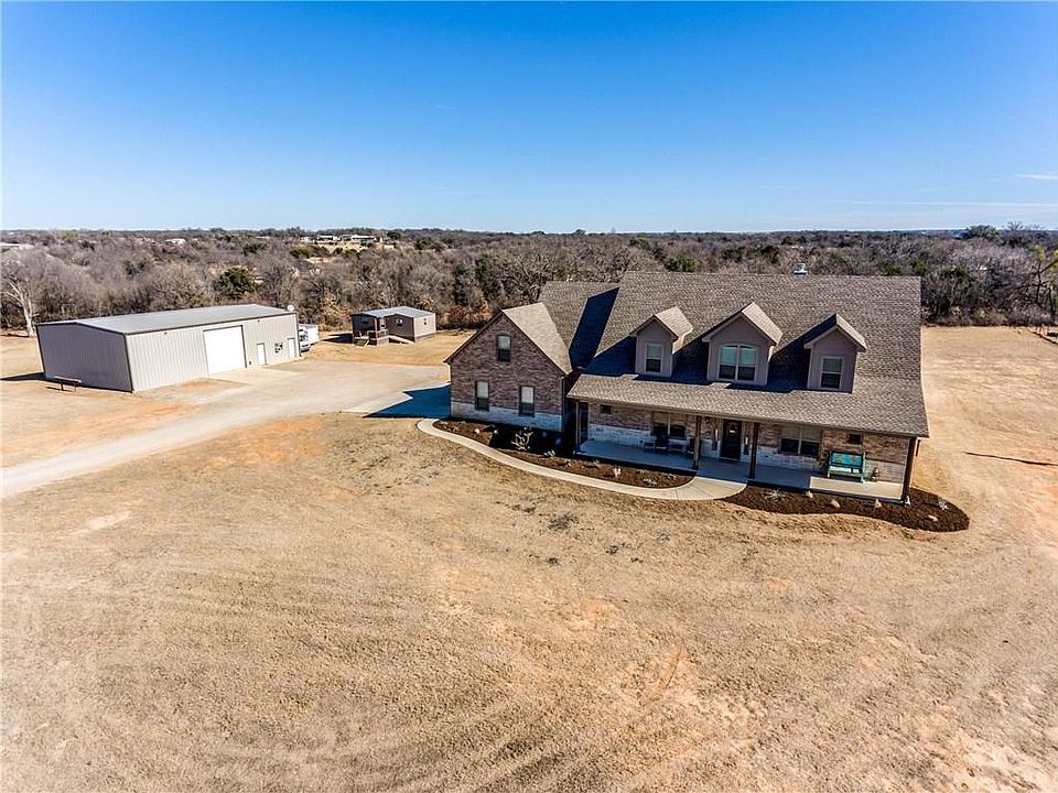 Beautiful 4 bedbroom 4 bath home on 5 acres! This custom home features an open concept with granite throughout, stained concrete flooring, a wood burning fireplace, large game room & a Lifetime dimensional shingle roof. The kitchen includes granite countertops, huge island, double oven & stainless Frigidaire appliances. The covered back porch, concrete patio & diving pool with a water fall and slide make this the perfect house for entertaining guests. Fully insulated 2400 sqft metal shop with 12ft insulated garage door with remote access, heat & AC, full bath, upstairs storage & office space. Underground propane tank, RV electrical & sewer hookup, and solar gate entry. Additional 5 acres available for purchase
