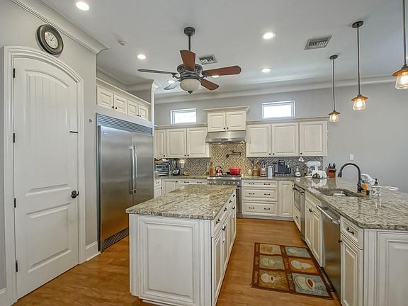 Custom eight year young home in Pontchartrain Shores Area. Welcoming front entry and front porch area. Open floor plan with high ceilings. Center hall foyer opens to large living and kitchen area. Kitchen has granite counter tops, island, Thermador gas range/oven, new trash compactor, drawer style microwave, new GE dishwasher, pantry & oversized built in Frigidaire Professional Series refrigerator and freezer. Primary bedroom with plenty of natural light, crown molding and tray ceiling. Primary bathroom has nice size bath area with hydro tub, walk in tiled shower, vanity with granite counter tops, sitting area and oversized closet. Second bedroom has an ensuite bathroom. There is also a third bedroom and full size bath. Laundry room with plenty of cabinet space leads to large garage area that measures 14x22. Walls are 6 inches thick, attic has foam insulation, crown molding throughout home, wood cabinets, LED lights and wood look tile floors. Interior doors are all custom arched cut. The sunroom is great additional space that can be used for an office, playroom etc. The covered patio has tile floors and overlooks backyard. House has been freshly painted inside & out. Iron entry door and patio doors. Low Flood insurance. This is a must see!