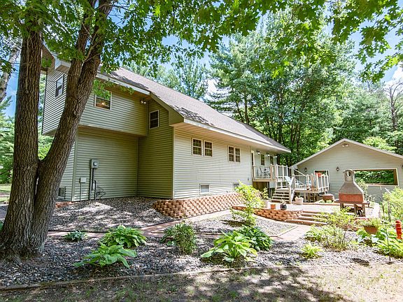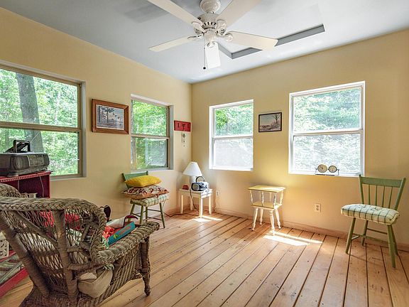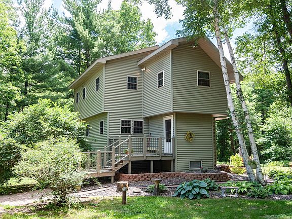 Unique custom home on 8 wooded acres. Home features cedar kitchen cabinets, pine bath cabinets, floors are mostly maple & they are cut from the property! Built in nooks and shelves all over the place, lots of angles, high ceilings & tons of light. Great use of windows to bring the outdoors in, surround sound/tv with all equipment, built-in dressers in two upper bdrs, custom designed headboards & shelves in upper bdr. The house was designed with energy efficiency in mind, extra insulation throughout keeps the house cool in the summer and warm in the winter. Average utility costs for everything is 250/month!!! (That includes the six garages, over 4000 ft!) Fantastic deck, patio, screened porch, sun room/three season porch & sauna to enjoy the outdoors! This home was custom designed to be nestled in among the trees & wildlife. All seasons here are gorgeous. You will appreciate the the craftsmanship & dedication put into this entire property. Appraisal done & came in at $375k!