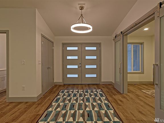 Stunning contemporary remodel - open floor plan 5 bedroom / 3.5 bathroom rambler with vaulted ceilings, french doors & custom millwork - on fully fenced and landscaped 1/3 acre lot complete with RV parking. Stone pillared entry punctuated by 24' cedar beam offers dramatic curb appeal. Modern interior boasts Quartz countertops, glass tile backsplash, soft pull cabinets, GE stainless appliance package, custom chrome LED lighting, jetted soaker tub and glass shower set in Italian porcelian tile.