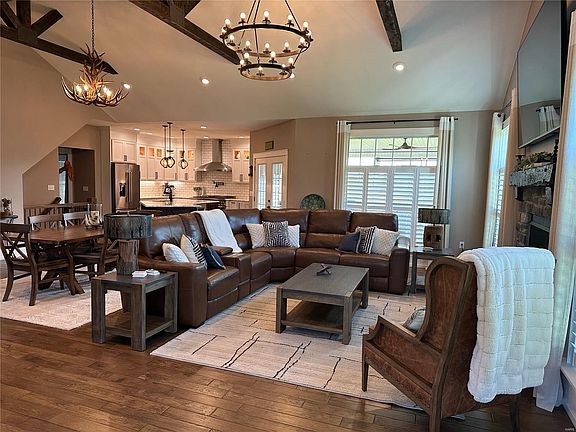 STUNNING custom 1.5 story on 3+/- acres, offers 4 generously sized bedrooms, 3 full, 2 half baths (one of which is conveniently located in heated & insulated garage near workshop area), 2 beautiful stone gas f/p, custom wood beams, plantation shutters, high-end wood flooring, chef's kitchen equipped w/wine cooler, upgraded stainless appliances, custom pantry, granite & tiled backsplash.  The main floor has primary suite w/tray ceiling, barn doors that lead to spa-like bath, custom closet & double doors that open to the covered deck & spacious screened-in porch.  Rounding out the main level are office/den, large laundry room, cozy family room, 1/2 bath & tons of natural light.  The upper level has 2 beds that share jack-and-jill bath, along w/a landing area.  The walk-out LL is an entertainer's dream w/media room (couches & receiver stay), FR, wet bar w/beverage cooler, sleeping area. Oversized 4 car garage has tall ceiling. Tranquil & peaceful! Too many upgrades to list - A MUST SEE! Additional Rooms: Mud Room