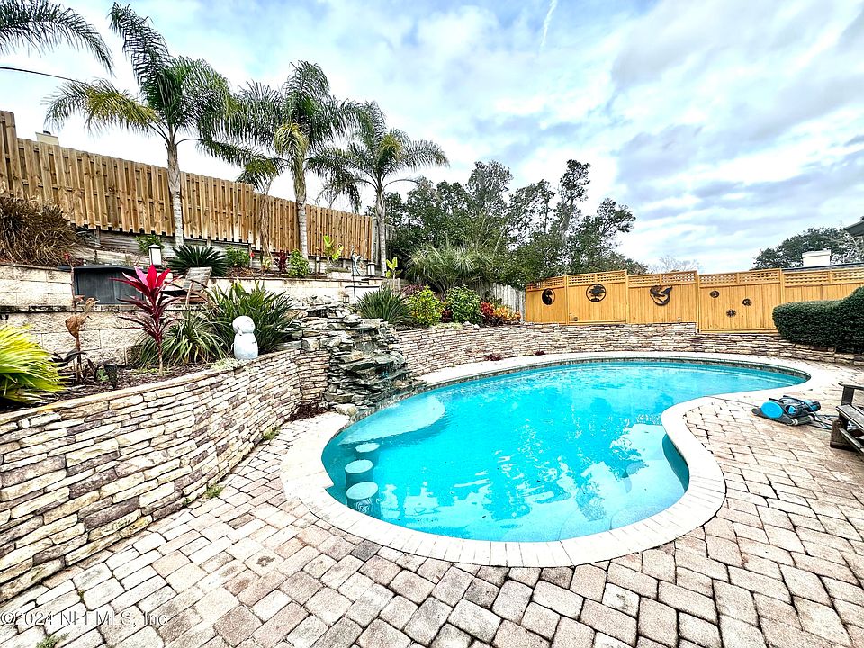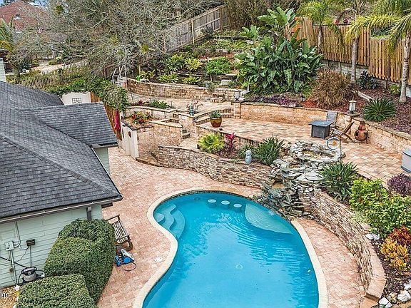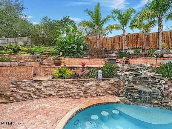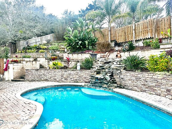 Bedroom and you are in the pool on a hot day or a cool midnight swim. Firepit on the patio, just right for some tunes and a glass of wine. Terraces of the tropics that are Florida... palm trees, crotons, hibiscus, elephant ears, birds of paradise and a whole lot more, plus an orange tree, fig tree and loquats delicious)! The waterfall tumbling off the terrace into the pool is its own serenity. In the front yard... a smaller waterfall/pond that will delight you as well as the fish:) This is what home feels like.