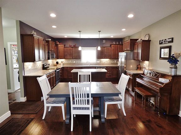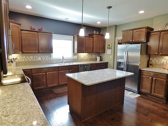Fantastic floor-plan with a great view on over a half acre lot! 5 bed, 3.5 bath with an additional office space. Walk into the 10ft ceiling living room open to dining and kitchen. Kitchen includes ample cabinetry & counter-top space, island, pantry, under cabinet lighting, SS appliances, granite counter-tops & tiled back-splash. Awesome 3 seasons room can be open up to add additional living space on the main. Master complete w/ master bath, large walk-in closet & bay window. 2 other bedrooms, full bath, half bath and laundry complete the main floor. Basement includes a wet bar area perfect for a pool table, family room/play room, office, bathroom, 4th & 5th bedroom. Every bedroom in the house has a walk-in closet. HUGE privacy fenced yard with in-ground sprinkler system. Great views from the rear as no one can build behind this home. Located on a quiet cul-de-sac. Community park in place w/ community pool to be be added this fall! Over-sized 3 car garage with a 3rd side door.