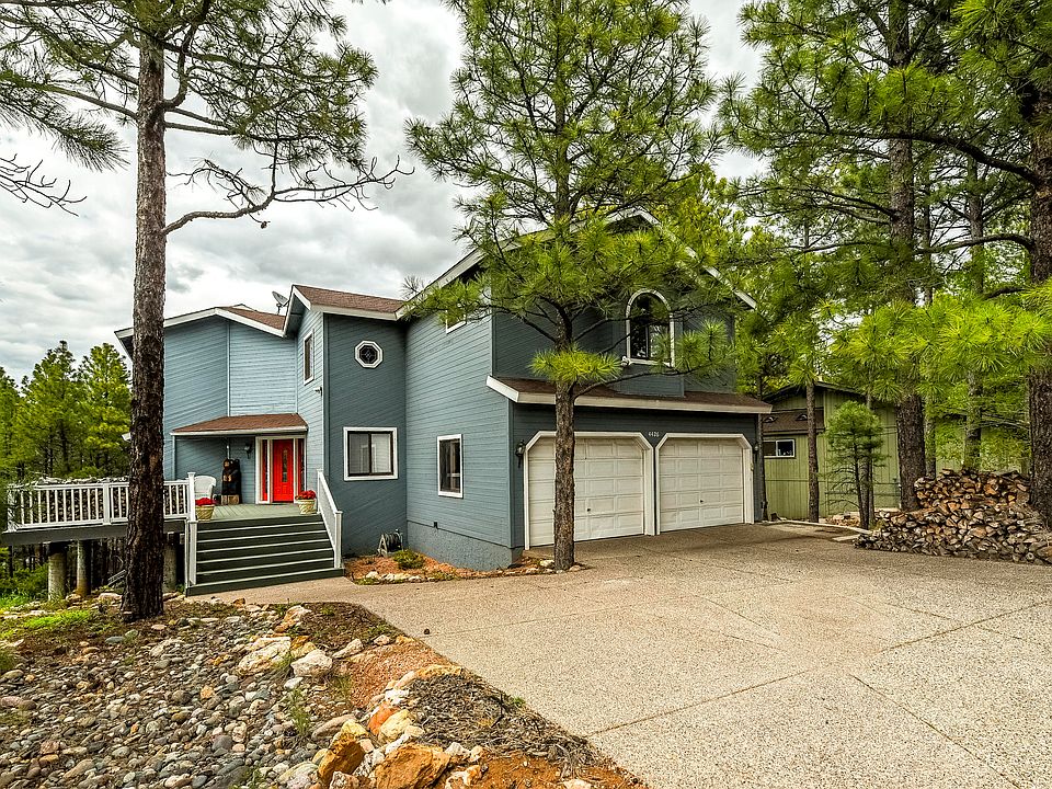 Located in the heart of the Country Club and super close to Aspen Valley Clubhouse, you are going to absolutely love the picture perfect views of the San Francisco Peaks from the living room and decks! Features nearly 4200 sq ft, 5 bedrooms / 4 1/2 bathrooms, living room with fireplace, vaulted ceilings and tons of windows, family room with gas stove and wet bar, and the entire upper level is dedicated to the master suite with a private deck and great mountain views! Tons of deck space for outdoor living have all been upgraded to composite. This property is a must see and priced accordingly for the next owner to upgrade / remodel to their own liking!