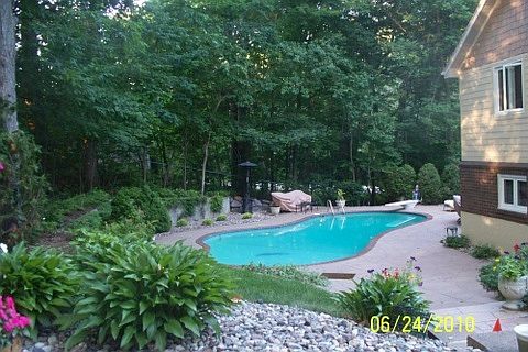 Great home with tons of updates! Features a kitchen w/white cabinetry, maple hardwood floors, living room with fp and built-ins; Upper level w/3 large bedrooms including master with private bath. LL features custom maple wet bar, family room w/patio doors to an outdoor paradise with in ground pool and extensive stonework! 3.5 stall heated garage w/sauna and basement access. Well serves Sprinkler system. Heating and Cooling = Hot Water.