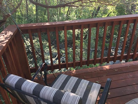 I am your childhood memory come true. Memories of swimming and fishing on a clear crystal creek.Remember? Stand on my back deck and capture them again. Pick up a fishing pools and fish again, wade in the tumbling waters of Oak Creek, sunbathe on the rocks.I am 1 of only 18 in a gated community that is privately owned and managed by the owners/shareholders of the Park. A Rarity in Sedona.Even rarer still to be on the creek across from National Forest Land. My age is from 1980, and yet my current interior feels vintage, retro, "Route 66". Lasso that simplistic lifestyle once again as I am turn key. Completely furnished down to the scrabble board. I'm a keeper. where you will you make memories for a life time. You'll see. Stand on my back deck. Breathe, close your eyes and remember.