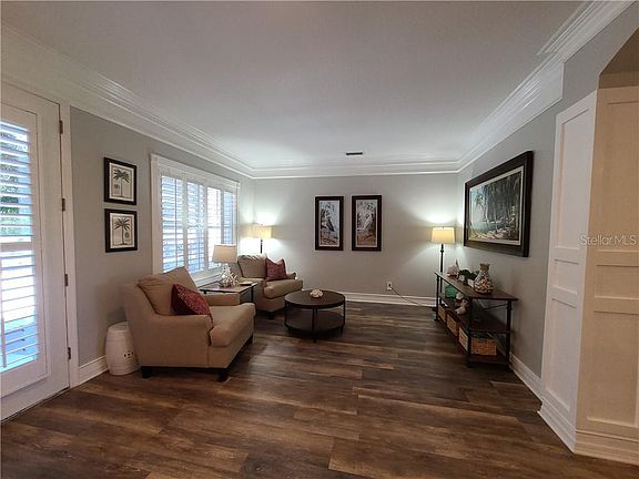 You will find this stunning home tucked away on a cul de sac on the prettiest street in the community! No front neighbors with a preserve view and the rear Lani over looks 2 ponds as well as Old oaks draped in moss. The home has over 100k in upgrades over the last few years. Recent complete kitchen remodel. Wood cabinets, crown, granite, BRAND new stove and refrigerator 2/2021, wine cooler, pantry and the best part a 10 ft long Island with lots of extra storage beneath. Great for the entertainer or gourmet cook in the house! Home has new floors throughout-Luxury Vinyl Plank and ceramic tile 12x24, recently painted interior in neutral colors, board and batten, shiplap, crown, trey ceilings in master and family rm, Plantation shutters throughout home and windows have been treated with 3M for glare and energy efficiency. Complete master bathroom renovation and a hall bathroom renovation. California closet in large master closet 14x6.5, 3 bedroom split plan with an additional office or use it as a 4th bedroom. Lg open floorplan. Laundry room has built in Iron board. Lg 3 car garage. Brick paver patios, beautiful landscaping and so many more beautiful features. Home is move in ready! Highly sought community rich in amenities and Gated. CDD is included in taxes. Hot tub, washer and dryer do not convey but are negotiable.