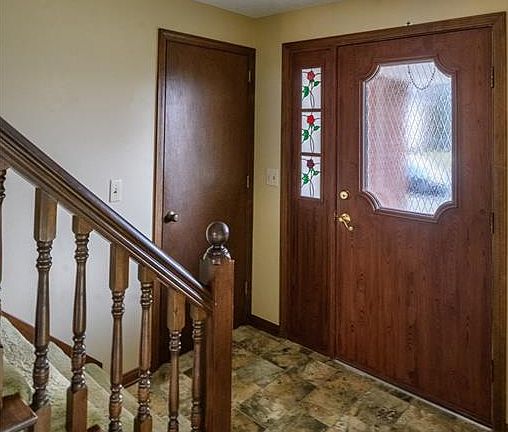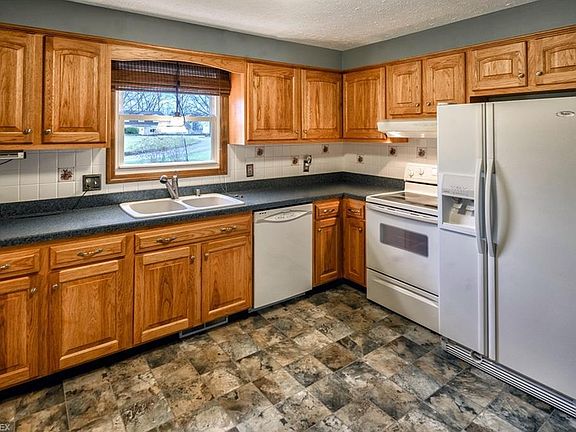Well built colonial in convenient Plain Local location. Covered porch entrance with a custom stained glass sidelight. The foyer opens to a large living room and dining room with lots of natural light thru the huge picture windows! The Kraftmaid oak kitchen has dovetailed drawers, tile backsplash, Moen fixtures, and a beveled edge countertop. Spacious family room with wood ceiling beams, a brick wood burning fireplace, and sliding glass doors to an oversized patio with a sidewalk to the driveway. Each of the three bedrooms has double closets and ceiling fans. The basement has freshly painted walls, glass block windows and could be easy to finish. The street has sidewalk and a park at the end!