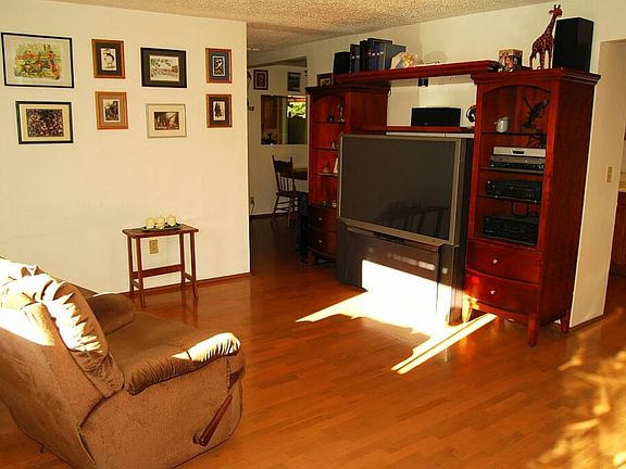 Condo alternative! No HOA dues! Classic rambler on oversized lot in Heather Downs. Features include hardwood floors throughout, newer double pane windows, newer ceiling fans, all applcs stay. Third bdrm wall was removed to create the dining room and eating area. Can be replaced to re-create the third bdrm. Outdoors you'll find a large covered patio for year 'round enjoyment, and garden spaces with fruit trees. Mature landscaping front and back. Quiet neighborhood.