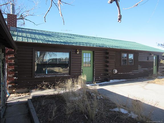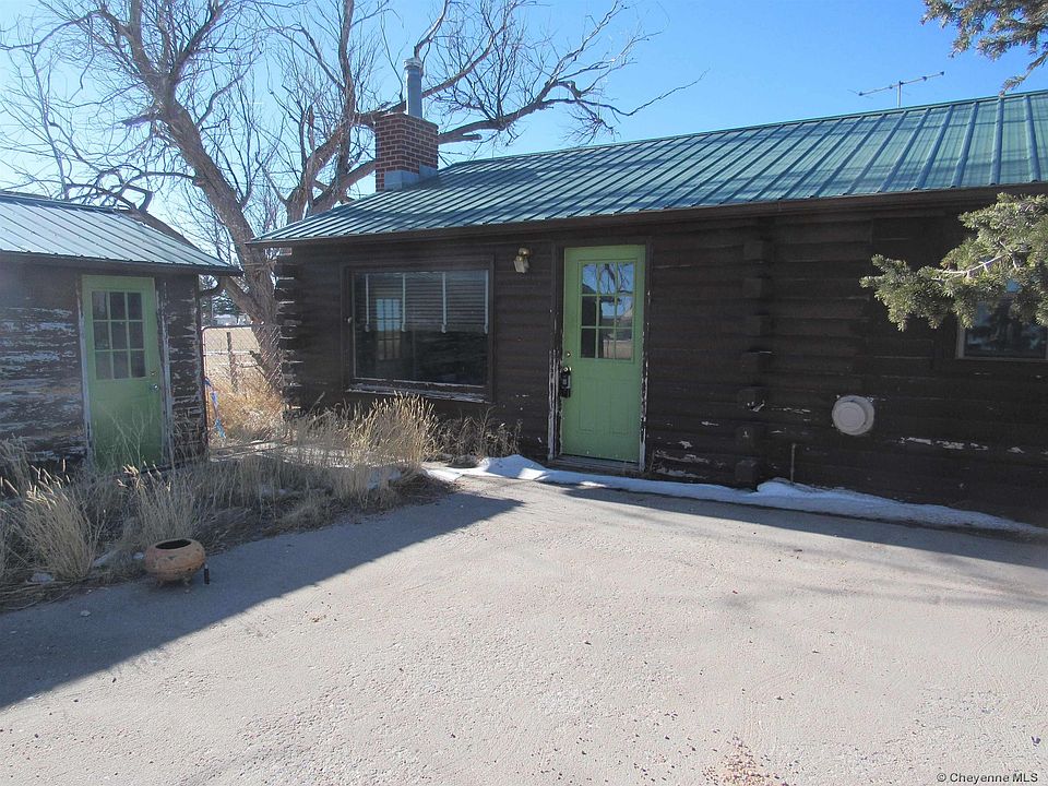 Opportunity on the edge of Cheyenne. This home sits on a 28620 square foot lot and features 2 bedrooms, hardwood floors and more. One level living and a the garage is detached. This is a real log cabin home and has a metal roof. The home needs work and is sold as is. SELLER IS ACCEPTING BACK UP OFFERS.