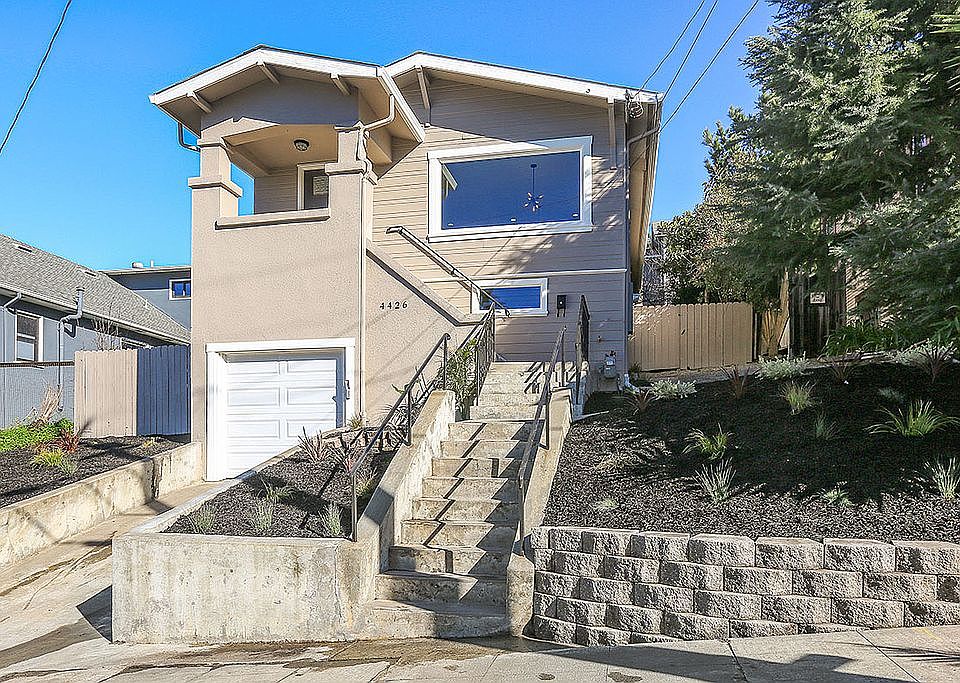 Move right in to this contemporary remodeled Maxwell Park home. Step up into the home which features an open living area and kitchen with views that overlook the neighborhood towards the Bay. Light streams into the home and creates a sunny yet sophisticated disposition. Enjoy two brand new bathrooms, walk in closets in each bedroom, and a fantastic laundry room. The master bedroom also enjoys a sitting area/office that looks into the backyard. Below the home is a basement for all your toys and a two car tandem garage with extra high ceilings.