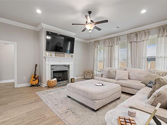 Beautiful 4 bedroom 3 bath home on a corner lot in Coburn Lakes. Open/split floor plan. Includes upgraded granite countertops, stainless steel appliances with gas range, blinds for windows. Wood plank tile flooring & more! Special features include undermount sink throughout, LED lighting, Smart Connect Wi-Fi thermostat, tankless gas water heater, walk-in master closet has separate access to laundry room & more. Fenced yard with storage building. Extra wide driveway for parking. Extra concrete slab in backyard with double gate.