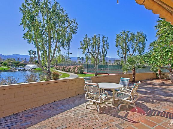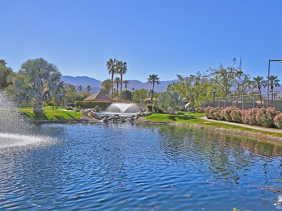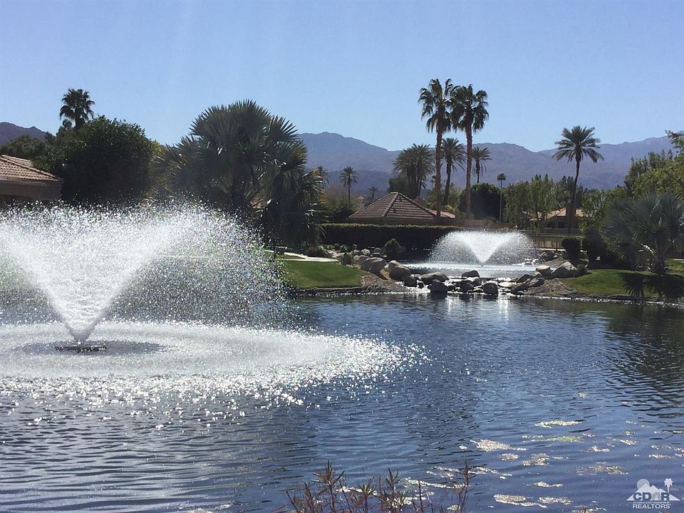 Prime Location! Water Front 3 BR/2BA CONDO, rarely on market with gorgeous MOUNTAIN AND LAKE VIEWS. The condo has a huge SOUTH facing patio and looks out on a large fountain on the lake, beautiful Mountain Views and is very close to the tennis courts. What could be better whether you are enjoying your breakfast, having a patio party or just relaxing? Hidden Palms is a well kept low density guard gated community of 211 homes with low HOA's and lots of green space. It has 4 community pools/spas, tennis & pickle ball, 3 lakes and walking paths. It is Centrally located in Palm Desert and close to El Paseo shopping and Restaurants. There are many Golf courses nearby and residents are offered a huge discount at Desert Willow. The Indian Wells Tennis Gardens is also close by. The home has newer floors and Air Conditioner/Furnace. A Great Location! Do not hesitate to make this your dream get-away home! Sold AS IS.