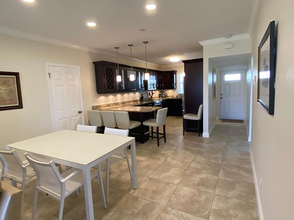 Located on Gulf access 200 foot wide, deep canal with community boat dock. Completely remodeled, large 2 bedroom, 2 bath unit, partially furnished. Heated pool and large community boat dock- first come first serve. Great views, first floor corner unit. High end finishes including tile throughout, granite, quartz, stainless appliances and crown molding. Brand new HVAC. Owner pays monthly association dues including trash, water, sewer, use of common areas and facilities. Tenant responsible for electricity, internet, and cable. First, last and security deposit required. No pets. No smoking. $129 application fee includes application, credit and background check through Zillow and condo association. References required.