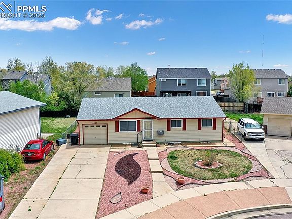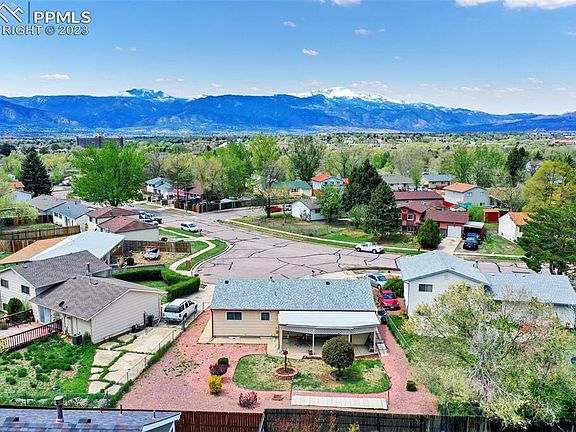Pride of ownership is evident in this 4 bed, 2 bath ranch style home on a cul-de-sac! Conveniently located near the Colorado Springs Airport, Military Bases, Downtown Colorado Springs, and endless dining and shopping options. Upon entering, you will be greeted by a cozy living and dining room space with views of Pikes Peak out the front window. The kitchen has tile flooring, oven, range top, microwave, eat-in kitchen, and stainless steel sink. As you make your way outside, you will visualize yourself relaxing or entertaining in the big backyard with a covered lattice porch and attached shed. The one car garage has extra storage space with its shelving and cupboards. Main-level primary bedroom and second main-level bedroom, both with closets and carpet. There is also a full bathroom on the main-level. Newer linoleum flooring throughout the basement. Two basement bedrooms- one with a ceiling fan, double closet, and window and the other with a closet and window. Great laundry room/mechanical space with cabinets, counter, closet and window. The possibilities are endless for the back bonus room: extra storage, play room, or multi-purpose space. Additional features include: newer 6 panel doors, window coverings, and newer windows. You won’t want to miss out on this home that is so well taken care of!