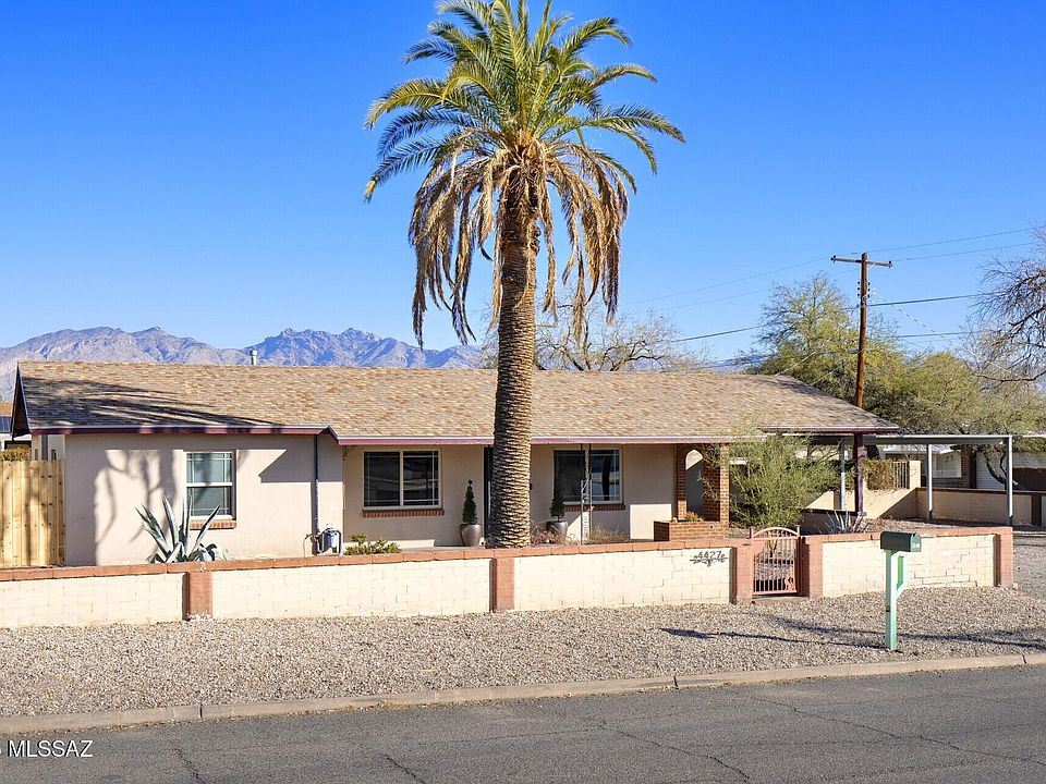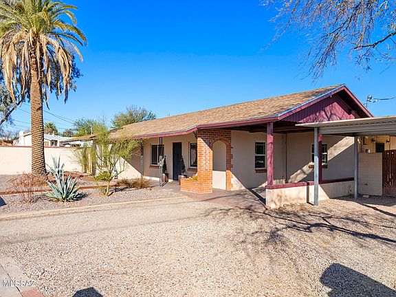 Charming red brick home with attached Guest House offers a'' lot of bang for the buck''. Main house has 2 large bedrooms, full bath, good-sized living room/dining area, ceramic & Saltillo tile flooring, and lots of character. Guest House has a beautifully updated kitchen with quartz counters, SS appliances, Saltillo tile flooring, 3/4 bath and a separate yard. Dual Pane Windows throughout. Roof and A/C replaced in 2018; entire property re-plumbed in 2024. Walled backyard provides tons of privacy. Great central location provides EZ access to U of A, shopping, bus line, Bike Route and Reid Park. Live in one and rent the other!