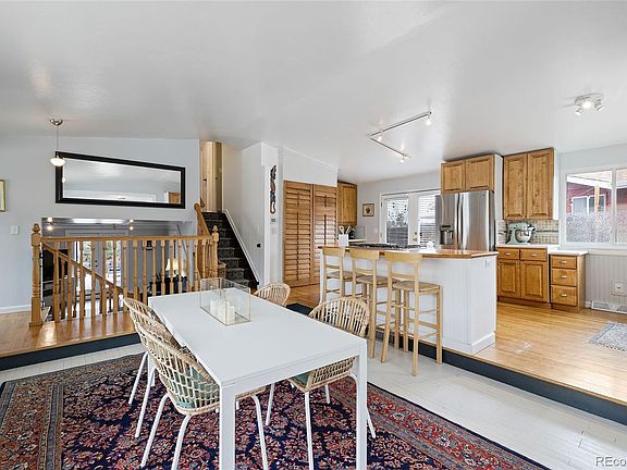 Welcome to this beautiful home located in the highly desirable Ridgeview Hills neighborhood, nestled on a quiet cul-de-sac. This home has 3 bedrooms & 3 bathrooms and a massive backyard! Upon entering, you'll be greeted by a warm and welcoming foyer that leads to the heart of the home - the open kitchen filled with natural light. The kitchen boasts an oversized island with butcher countertops, stainless steel appliances, a gas-burning cooktop, a wet bar, a laundry closet, and access to the quaint side patio - perfect for entertaining guests! The large and bright dining room is ideal for hosting dinner parties, while the lower-level living room provides a cozy atmosphere with a wood-burning fireplace and access to the backyard. A bedroom and en suite bathroom complete the lower level, providing ample space for guests or family members. Upstairs, the primary suite is a peaceful retreat with an en suite bathroom, private deck, office niche, and a large walk-in closet. The 2nd bedroom and full bathroom complete the upstairs. If you love the outdoors, the backyard is sure to impress, featuring an expansive lawn, mature trees, flowers, a garden area, a two-car attached garage, and an oversized driveway, there is plenty of room for all your toys. This home is in a prime location within walking distance of Little Dry Creek Park, close to shopping, dining, and easy access to C-470, and I-25. Don't miss out on the opportunity to make this beautiful home yours!
