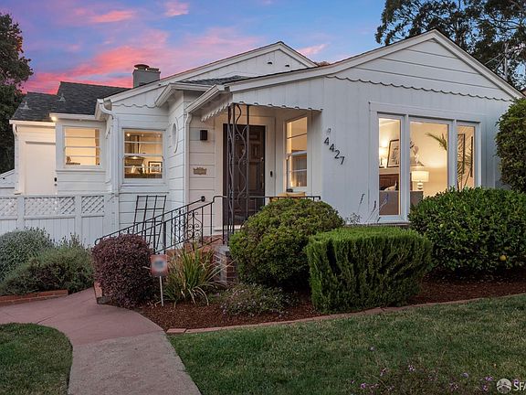 Located on a peaceful cul-de-sac in the heart of Piedmont Ave, 4427 Montgomery Street has been recently upgraded while retaining its original charm. This home features three bedrooms and two fully remodeled bathrooms, offering a tranquil retreat close to vibrant Piedmont Ave. The foyer leads to a formal living room with a wood-burning fireplace and picture window, flowing into the spacious dining room with its original built-in. The kitchen boasts sleek quartz and butcher block countertops, a butler's pantry, and an eat-in breakfast nook. The primary suite includes dual closets and a new, luxurious ensuite bathroom with a steam shower. Two additional bedrooms and a renovated hall bath enhance the home's elegance. The rear bedroom, which can also serve as a family room, is equipped with Sonos speakers and a built-in serving bar with a beverage fridge, perfect for entertaining. Enjoy indoor-outdoor living with a Nana wall that opens to a spacious deck and lush garden. The private, parklike backyard features mature trees, a manicured lawn, seating area, and raised garden beds. The detached garage, with permitted plans for a 240 sq ft ADU, offers the potential for a guest house. Located near Piedmont Avenue's shops and restaurants, with easy access to Rockridge, Temescal, and SF