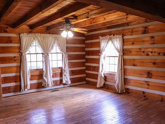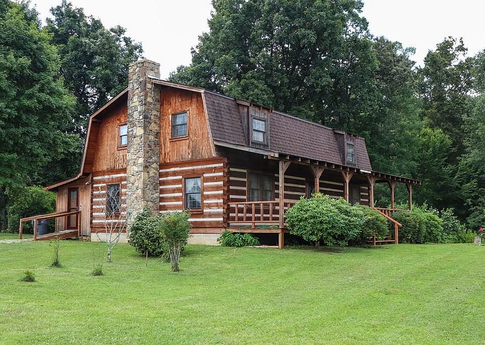 Adorable cabin on 9 acres just a "stones throw" to Cookeville. Unique barn shaped log with vintage "chinking" detail that inspires a nostalgic ambiance of days gone by. Tucked nicely at the back of the acreage (fenced, unrestricted & suitable for cattle or horses), this hand built home has some nice features.Inside features gleaming wood in all directions, Very roomy kitchen with handsome granite counter tops, main level master, 1/2 bath w/laundry (main level), upper level 3 bedrooms, an office & a full bath. Full basement with wood stove and exterior door. Exterior is surrounded with nice shrubs and trees. Front rocking chair porch overlooks the land and rear covered porch is inviting and cozy. Partial enclosed back porch could be finished for a sunroom. Couple of outbuildings, small barn and place for a garden.