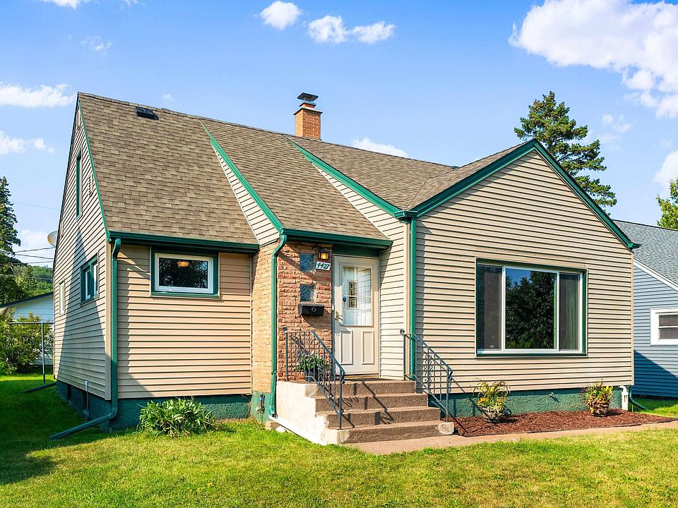 Move right into this updated Lakeside 4 bedroom, 2 bath home that has an excellent layout. Not your average Bungalow... making it so much larger than it looks from the exterior! Check it out on this virtual walkthrough- LINK: https://my.matterport.com/show/?m=ai9ciZFvAoX&mls=1 ! All the practical spaces you LOVE along with so many attractive updates! Enjoy the new entryway flooring that transitions to natural hardwood floors as you walk in the door! A comfortable living room complete with mini split for cooling and additional heating & a brand-new picture window to let the sunshine in all day! Entertain, eat, and organize in the dining room open to the living room - a great gathering space! A practical galley-like kitchen makes for efficiency and has a casual eat-in space, and with doors to the deck, grilling is easy! 2 Bedrooms on the main level (or use one for an office or kid’s play area) with a darling updated bath make for a floor plan conducive to the way we live! The upstairs dormer area is fantastic, with additional bedrooms and the remodeled bath which SPARKLES! Lower level becomes that additional space you’ve wanted and has so much potential! ***New boiler (2023), Deck (2021), all Appliances and 14 windows are less than 5 years old, rebuilt Chimney (2019), newer upstairs carpet (2020), updated electrical/plumbing, and the list of improvements done in the last 5 years continues! *** Bike or hike as the location by Hawk’s Ridge out your door is a dream in Lakeside! You will truly enjoy this comfortable home with space for all the things!